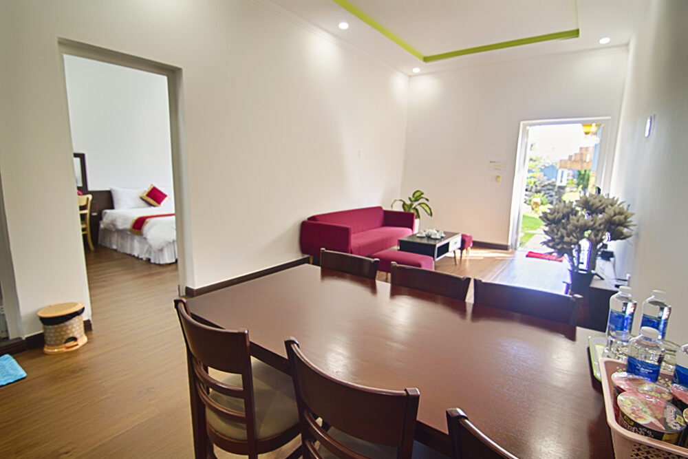The Pensee Apartment is situated on the edge of courtyard with a wonderful view of the hotel gardens, The room is composed of a living room, dining area, a full kitchen and a large bathroom with walk-in shower.